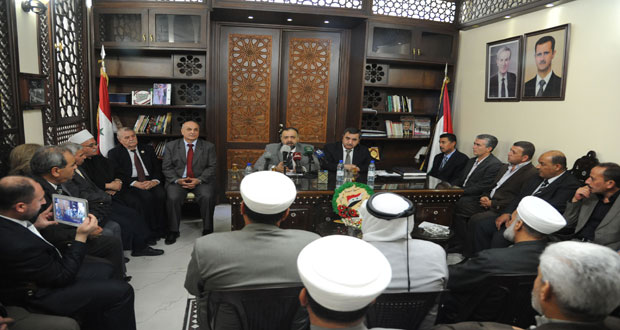حمص-سانا بحث وزير الأوقاف الدكتور محمد أبو الخير شكري خلال لقائه محافظ حمص وعدداً من …