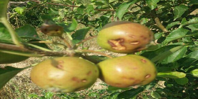 تعرض محصول التفاح خلال الموسم الحالي في محافظة حمص لضرر بالغ نتيجة الأمطار الغزيرة المصحوبة بالبرد التي سببت تلفا للثمار في بداية مرحلة الإثمار وتراوحت نسبة الضرر حسب مديرية زراعة حمص بين 40 و 80 بالمئة تركزت في منطقة المركز الغربي وتلكلخ.