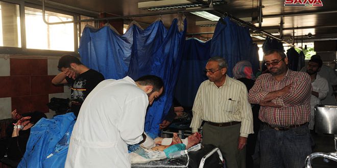 ولفت مراسل سانا الحربي في حلب إلى سقوط قذيفة أطلقها إرهابيون يتحصنون في منطقة جمعية الزهراء السكنية على الأطراف الغربية للمدينة على أحد المنازل في حي حلب الجديدة.