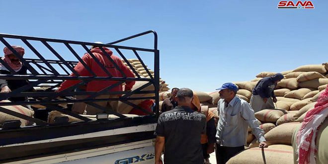 بعد انقطاع دام ثلاثة مواسم نتيجة اعتداءات إرهابيي “داعش” بلغت كمية القمح المسلمة إلى فرع الحبوب في دير الزور من الفلاحين 1261 طنا وذلك في مركز الفرات بمدينة دير الزور.
