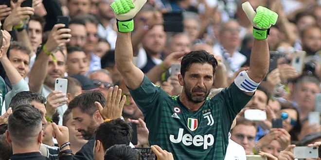 وودع بوفون البالغ من العمر 40 عاما جوفنتوس بالدموع بعد آخر مباراة شارك فيها في الفوز 2-1 على فيرونا الذي هبط للدرجة الثانية في أيار الماضيبعد أن أمضى الحارس المخضرم 17 عاما في صفوف بطل الدوري الإيطالي.