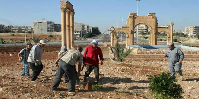 وأوضح المهندس رضوان العلواني رئيس مجلس المدينة في تصريح لمراسل سانا أن أعمال التحسين والتجميل تشمل تأهيل السور المحيط بالدوار وزراعة أشجار العفص السياجي في محيط الدوار وتشذيب أشجار النخل المنتشرة في المكان مع إزالة الأشجار والشجيرات التالفة وإعادة تأهيل البحرة وتأمين تعبئتها بالمياه وتشغيل نوافيرها.