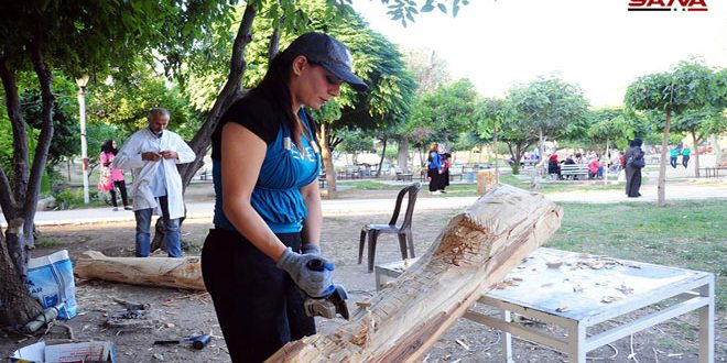 النحاتة مفيدة الديوب التي تشارك في الملتقى تأكيدا لدور المرأة في نشر الثقافة وتعزيز الذائقة الجمالية في المجتمع قالت في تصريح لـ سانا: “أعمل على إنجاز منحوتة تجسد المرأة بأسلوب تعبيري أقرب للواقعي وهي تحمل الكرة الأرضية بيديها كرمزية عن دورها المحوري في الكون” مبينة أن اختيارها موضوع المرأة جاء متناسبا مع خامة الخشب التي تشبهها من حيث العطاء والليونة.