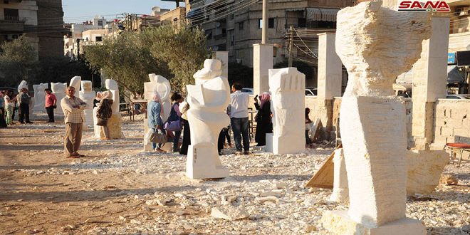 وشكلت الأعمال مجتمعة معرض نهاية ملتقى النحت الذي أقامه مجلس مدينة جرمانا فضم 23 منحوتة حجرية و3 من الخشب جاءت بمختلف الأساليب والمدارس الفنية بأيدي 26 فنانا وفنانة من مختلف المحافظات واستندت على رموز ودلالات تمحور معظمها حول الوطن والمرأة.
