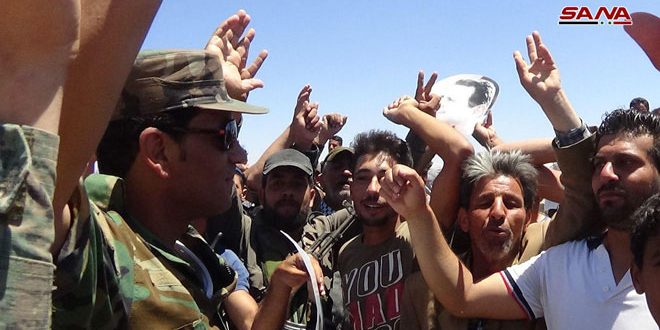 وفي تصريحات للمراسل أكد الأهالي المحتشدون فرحا برحيل الإرهاب عن منازلهم وأرضهم أنهم انتظروا هذه اللحظات بفارغ الصبر منذ سبع سنوات وكلهم أمل بأن الجيش العربي السوري قادم لا محالة لدحر الإرهابيين الذين عاثوا في الأرض فسادا وقتلا واعتداء على جميع مقومات الحياة في المحافظة.