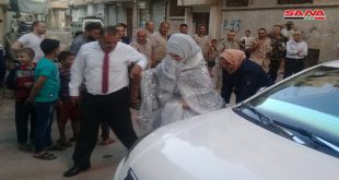 بالقرب من الساحة حيث نصبت خيمة لاستقبال الوجهاء زينت بأعلام الوطن وقفت وداد عمير النعمة أم فراس ماخوذة بحالة الفرح التي تعم البلدة تكاد لا تصدق ما تراه عيناها فالرجال والشباب ملؤوا المكان سرورا وكان الإرهاب قبل أيام يأسرهم أما اليوم فيغنون ويصفقون ويرفعون العلم الوطني والأطفال من حولهم يدورون في لهو وسرور.