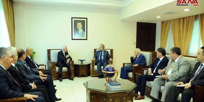 بحث الدكتور فيصل المقداد نائب وزير الخارجية والمغتربين مع وفد من اللجنة التنفيذية لمنظمة التحرير الفلسطينية برئاسة عزام الأحمد عضو اللجنة التنفيذية لمنظمة التحرير رئيس الدائرة العربية التطورات المتعلقة بالصراع العربي الإسرائيلي.