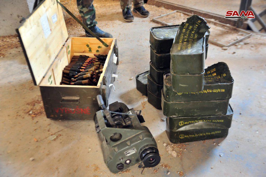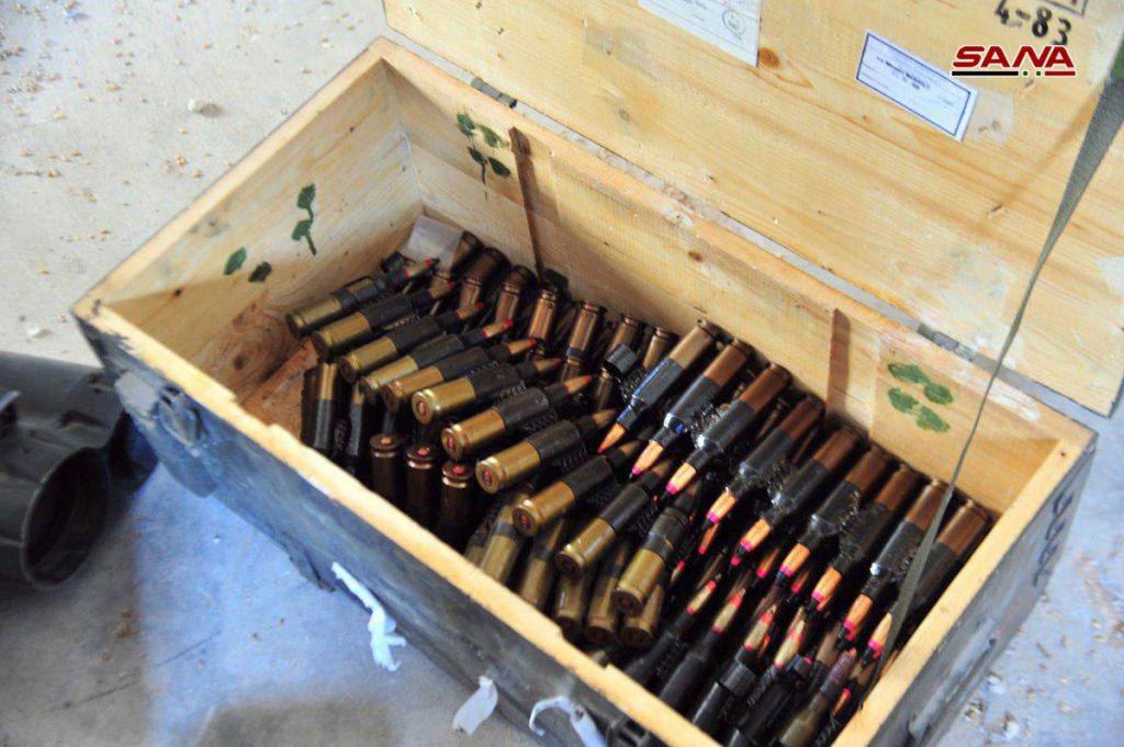 من الأسلحة والذخيرة التي عثر عليها الجيش في منطقة غرز من مخلفات الإرهابيين بريف درعا