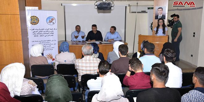 انطلقت اليوم فعاليات مشروع التدريب العملي الصيفي لطلبة كليات ومعاهد جامعة حلب الذي يقيمه مركز تنمية الموارد البشرية وبناء القدرات بغرفة صناعة حلب بالتعاون مع جامعة حلب وذلك في مقر الغرفة بمشاركة 317 طالبا وطالبة.