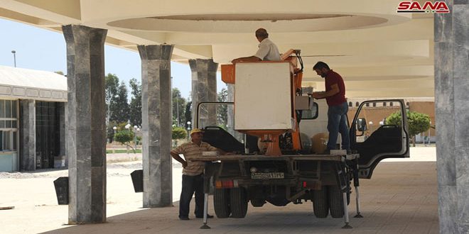 كادر المؤسسة العامة للمعارض وورشات العمل الخاصة يعملون على امتداد مساحة مدينة المعارض وفق خطة مدروسة ومهام موزعة واليوم تعمل ورشات الكهرباء والمعلوماتية على تجهيز البنية التحتية واجراء الصيانات الضرورية.