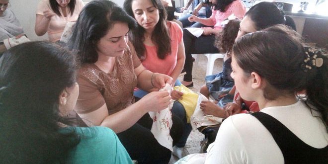 ورشات المشروع التدريبية متواصلة ومنها الورشة المقامة حاليا وتجمع عددا من النساء ضمن أجواء تسودها المحبة وذلك وفقا للمتدربة لمياء البربور التي توضح أنها لم تكن تتوقع هذه الفائدة من التدريب وخاصة بما يخدم دراستها كونها تحمل شهادة التعليم الثانوي اختصاص فنون.