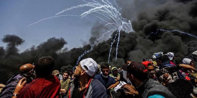 وكان طفل فلسطينى استشهد وأصيب 220 فلسطينيا اخرين بالرصاص وبحالات اختناق أمس أثر قمع قوات الاحتلال المشاركين فى فعاليات مسيرات العودة التى ينظمها الفلسطينيون كل جمعة منذ الثلاثين من آذار الماضى على أطراف قطاع غزة.
