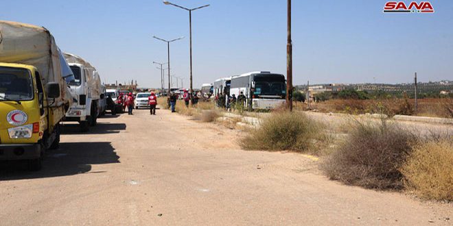 وذكر مراسل سانا الحربي من منطقة سجنة على أطراف درعا البلد أن 10 حافلات تحركت بعد ظهر اليوم باتجاه شمال سورية وعلى متنها 407 من الإرهابيين وعائلاتهم برفقة سيارات تابعة للهلال الأحمر العربي السوري وذلك في إطار الاتفاق القاضي بإخلاء منطقة درعا البلد من المظاهر المسلحة.