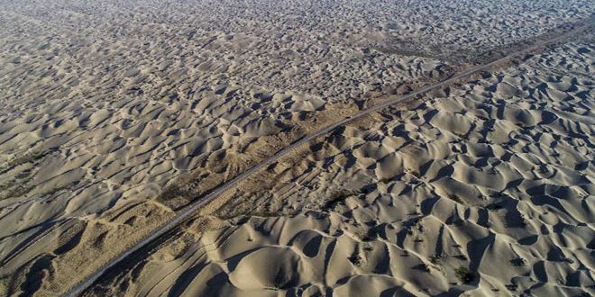 وأضافت الوكالة إن العمال قد أنجزوا حوالي 100 كيلومتر من الطريق حاليا محتملين صعوبات ومشقات في ظروف قاسية مثل أشعة الشمس القاسية ودرجات الحرارة المتفاوتة بشكل حاد والعواصف الرملية.