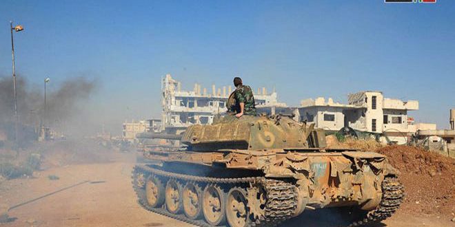 وتتابع وحدات الجيش بالتعاون مع القوات الرديفة عمليتها العسكرية الرامية إلى إنهاء الوجود الإرهابي في محافظة درعا حيث حررت خلال الأيام الماضية عشرات القرى والبلدات ما عجل في استسلام المسلحين وانضمام عدد من القرى والبلدات إلى المصالحة.