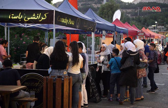 ويزداد الإقبال على شارع الأكل بعد أن راقت الفكرة لزواره حيث سيبقى مفتوحا حتى الـ 26 من تموز الحالي في إطار مهرجان “الشام بتجمعنا” المقام في حديقة تشرين وسط دمشق.