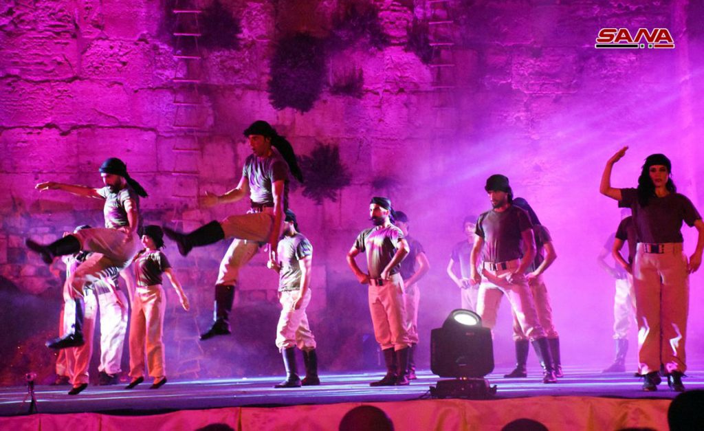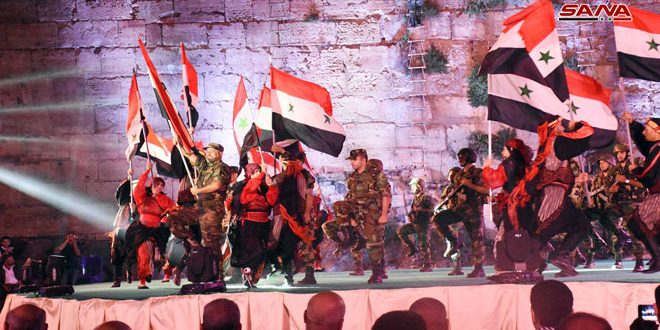 وافتتح المهرجان باحتفالية وطنية بعنوان “الزمن إلنا” اخراج الفنان تامر العربيد حيث تناولت فقرات الاحتفالية حكاية شعب وأرض وسهل وجبل حكاية انتصار أبطال الجيش العربي السوري على الإرهاب.