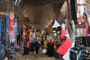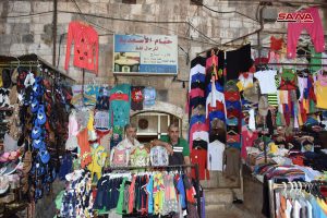 وأشار فرزات إلى أن السوق يضم خانات “الصحن والجمرك والحنة” المشيدة على طراز يؤمن راحة المسافرين ويحافظ على بضائعهم وفيه 4 مساجد وحمامان اثريان هما “الحلق والأسعدي” كانا يستمدان المياه من ناعورة المأمورية.