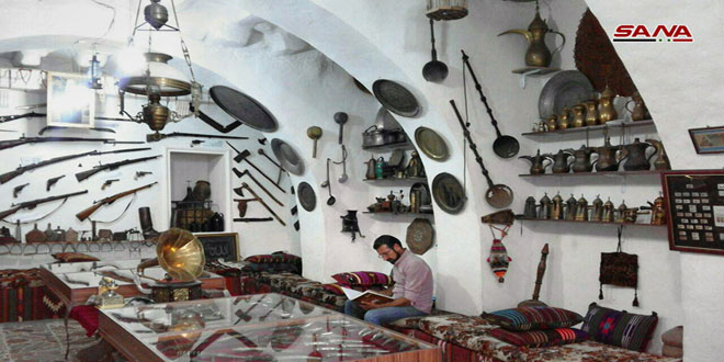 الاهتمام بالأدوات القديمة المرتبطة بذاكرة الأجداد شكل دافعا لدى المواطن عصمت أبو زين الدين لتأسيس متحف للتراث ضمن مضافة منزل أسرته في مدينة شهبا بالسويداء التي يعود بناؤها إلى نحو 90 عاما.