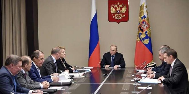 بحث الرئيس الروسي فلاديمير بوتين مع أعضاء مجلس الأمن الروسي اليوم نتائج قمته مع الرئيس الأمريكي دونالد ترامب.