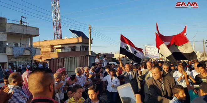 وعبر أبناء البلدة التي تتوسط الطريق القديم بين دمشق ودرعا عن فخرهم الكبير بانجازات الجيش العربي السوري الذي شارف على تحرير محافظة درعا من الإرهاب.