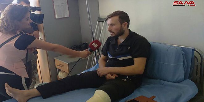 يوسف حاج موسى من بلدة الفوعة الذي أصيب أثناء انفجار إحدى العبوات التي زرعها الإرهابيون أثناء محاولتهم التسلل إلى البلدة لفت إلى أنه تلقى كل العلاجات اللازمة في مشفى حلب الجامعي.