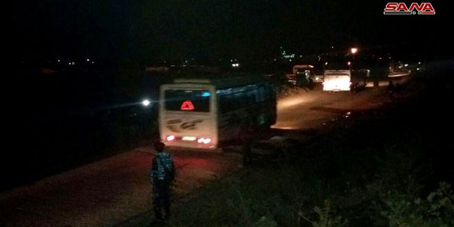 وأفاد مراسل سانا من ممر جبا بمغادرة 55 حافلة إلى شمال سورية مساء اليوم وعلى متنها المئات من الإرهابيين مع عائلاتهم تنفيذا للاتفاق القاضي بإنهاء الوجود الإرهابي في قرى وبلدات ريف القنيطرة.