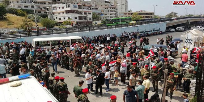 وفي سياق متصل لفت مراسل سانا إلى أن نحو 300 من أبناء بلدتي كفريا والفوعة بريف إدلب القادمين من مركز الإقامة المؤقتة في جبرين بريف حلب وصلوا إلى مدينة اللاذقية وسط استقبال شعبي حافل.