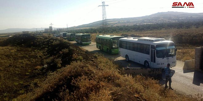 وأفاد مراسل سانا من ممر جبا بريف القنيطرة بمغادرة 46 حافلة مساء اليوم إلى شمال سورية وعلى متنها 959 إرهابيا والعشرات من أفراد عائلاتهم وذلك كدفعة ثالثة من الإرهابيين وفقا للاتفاق القاضي بعودة الجيش العربي السوري إلى النقاط التي كان فيها قبل عام 2011 وخروج الإرهابيين الرافضين للتسوية إلى إدلب وتسوية أوضاع الراغبين بالبقاء.