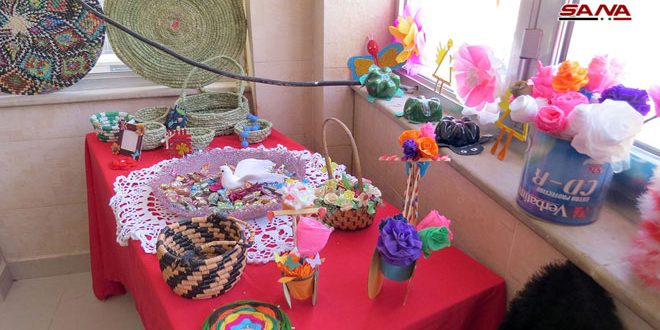 تضمن معرض الأشغال اليدوية وإعادة تدوير مخلفات البيئة الذي أقامه المركز المجتمعي في الجمعية السورية للتنمية الاجتماعية بمدينة القامشلي أعمالا فنية لمجموعة من النساء اللواتي خضعن لدورات في المركز.