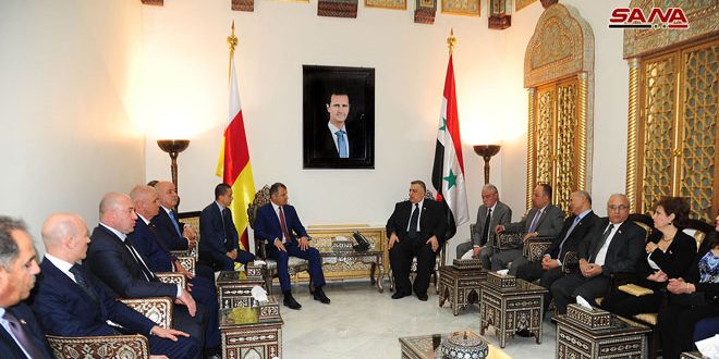وأكد الرئيس بيبيلوف أن بلاده شريك استراتيجي لسورية وهناك آفاق كبيرة لتطوير العلاقات البرلمانية مبينا أن جمهورية أوسيتيا الجنوبية ستعمل لتعزيز جوانب التعاون ولا سيما السياسية والاقتصادية والبرلمانية مع سورية التي تمثل مركز الحضارة في العالم وعلى الجميع فعل ما بوسعه للحفاظ على القيم الحضارية السورية بدل العمل على تدميرها.