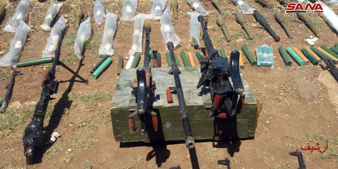 وذكر مراسل سانا في درعا أن الأسلحة التي تم تسليمها شملت “سيارات مزودة برشاشات ثقيلة وعربة بي ام بي ومدافع ميدانية وصواريخ محمولة على الكتف وقذائف هاون ورشاشات بعيارات متنوعة وقذائف آر بي جي وقنابل فردية وألغاماً مضادة للأفراد والدروع وقناصات ومناظير ليلية وخوذاً وذخيرة”.