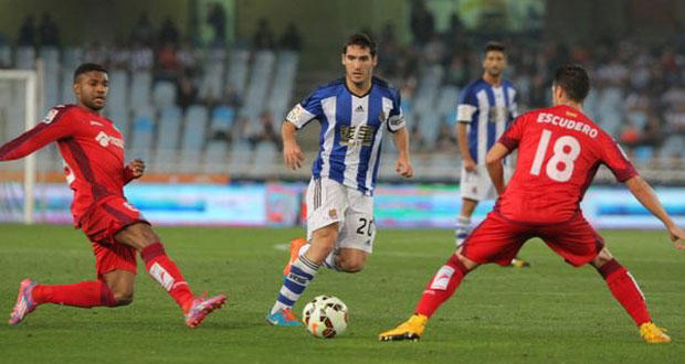 فاز خيتافي على ريا ل سوسيداد 2-1 ضمن الجولة الثامنة من الدوري الاسباني لكرة القدم أمس.