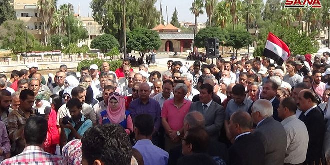 وترحم المشاركون على أرواح شهداء السويداء وجميع شهداء الوطن مؤكدين أن سورية ستنتصر على الإرهاب بدماء أبنائها وبطولات جيشها الوطني.