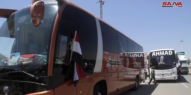عادت دفعة جديدة من السوريين المهجرين القادمين من لبنان عبر نقطة جديدة يابوس الحدودية حيث تم نقلهم بالحافلات إلى منازلهم في ريف دمشق الغربي والتي غادروها في أوقات سابقة هربا من إجرام التنظيمات الإرهابية.