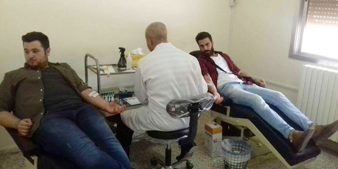 دعما لجرحى الجيش والقوات المسلحة وتقديرا لبطولاتهم في سبيل الدفاع عن الوطن نفذ الطلبة المشاركون في دورة مشرف فرقة طليعية التي يقيمها فرع حماة لمنظمة طلائع البعث لطلاب السنة الثالثة بكلية التربية بالجامعة معلم صف حملة تبرع بالدم وذلك في مركز نقل الدم بالمدينة.