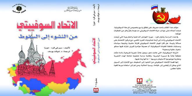 ضمن “المشروع الوطني للترجمة” صدر حديثاً عن الهيئة العامة السورية للكتاب كتاب “الاتحاد السوفييتي من النشوء إلى السقوط” تأليف.. سيرغي قره مورزا وترجمة الدكتور شوكت يوسف.