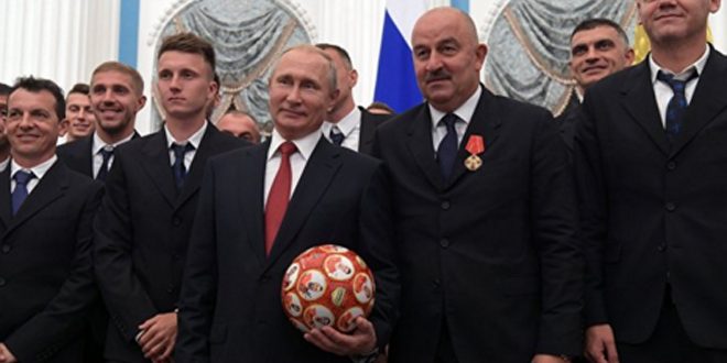 منح الرئيس الروسي فلاديمير بوتين اليوم جوائز الدولة وشهادات تقدير للجهاز الفني ولاعبي المنتخب الوطني لكرة القدم.