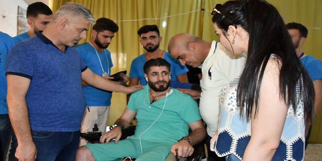 الرائد إبراهيم مصطفى ديب المشارك في المعسكر وهو فاقد للبصر نتيجة إصابته في احدى المعارك مع الإرهابيين في منطقة خان الشيح عبر عن شكره وتقديره لكل الجهات المساهمة في إقامة وتنظيم هذا المعسكر الذي يمثل بلسماً للجراح ودافعاً معنوياً قوياً لكل المشاركين منوهاً بالخدمات المقدمة وحرص المتطوعين في المعسكر على خدمة المشاركين والاستجابة لطلباتهم بكل محبة واحترام.