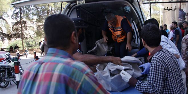 ارتقى شهيدان وأصيب 6 مدنيين بجروح نتيجة اعتداء التنظيمات الإرهابية بقذيفتين على حي الحمدانية ومشروع 3000 شقة في مدينة حلب.