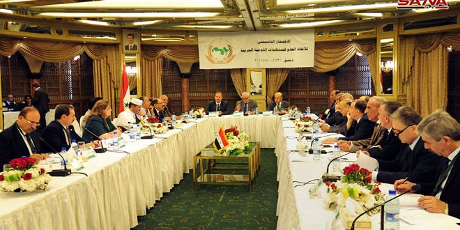 بدأت اليوم في فندق الشام بدمشق أعمال الاجتماع التأسيسي للاتحاد العام لعدد من المنظمات القومية العربية بهدف إحياء العمل النقابي الشعبي العربي والاستجابة لتطلعات الشعوب العربية وتكريس قيم الوحدة ونبذ التفرقة.