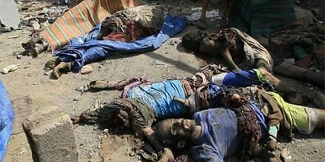 ويواصل التحالف الذى يقوده النظام السعودي عدوانه على اليمنيين منذ آذار عام 2015 ما تسبب بمقتل عشرات الآلاف من المدنيين ودمار وخراب هائلين في البنية التحتية لليمن فضلاً عن حصار جائر أدى إلى انتشار المجاعة والاوبئة وخاصة الكوليرا.