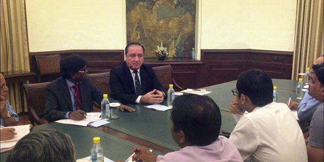 دعا سفير سورية في الهند الدكتور رياض عباس الشركات الهندية ورجال الأعمال والإعلاميين الهنود إلى المشاركة في الدورة الـ 60 لمعرض دمشق الدولي والاستفادة من فرص الاستثمار في سورية مشيرا إلى أهمية مشاركة الهند ومساهمتها في عملية إعادة الإعمار.