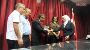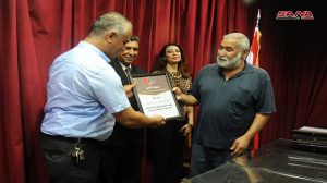 وعبر الإعلامي محمد أحمد علي من الوكالة العربية السورية للأنباء سانا في كلمته عن أهمية التكريم لأبناء سورية الذين اختاروا وطنهم وتمسكوا به وبالدفاع عنه بينما اعتبر مدير منشأة “سيريكو” الطبية أسامة خضر التكريم رمزاً لاحتفاء الوطن بأبنائه المبدعين الذي لم يبخلوا في تقديم كل ما لديهم دفاعاً عنه.