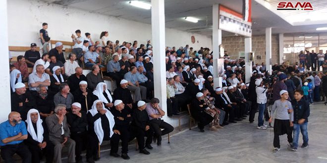 وجدد المشاركون ثقتهم بالجيش وحتمية الانتصار على الإرهاب وكسر جبروت صانعيه وتحرير كامل ربوع الوطن من رجسه موجهين التحية إلى أهلنا الصامدين في الجولان السوري المحتل الذين وقفوا إلى جانب وطنهم في أعتى ظروف الحرب الظالمة.