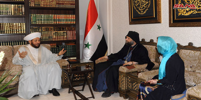 وأشار المفتي حسون إلى أن سورية “انموذج للإخاء والسلام والتضامن بين أبنائها مسلمين ومسيحيين” مؤكدا أن الشعب السوري بفضل صموده وتضحياته والتفافه حول جيشه وقيادته تمكن من تحقيق الانتصار على الإرهاب.