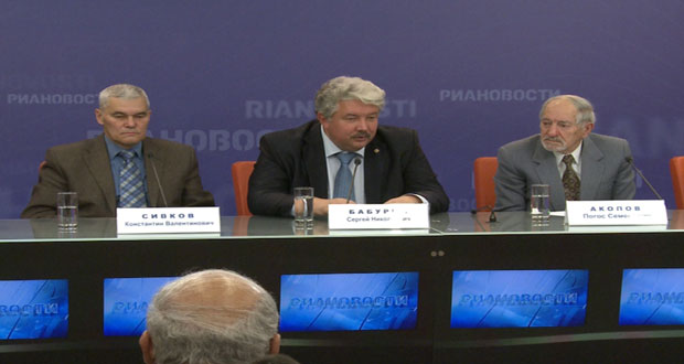 وفي مقابلة مماثلة أعرب رئيس جمعية الدبلوماسيين الروس السفير بوغوص اكوبوف عن أسفه وحزنه لما ترتكبه التنظيمات الارهابية في سورية من جرائم قتل وترهيب وتدمير ولما تتعرض له من عدوان تداخلت فيه عناصره المحلية بمخططات خارجية رسمت لسورية في وقت سابق.