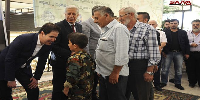 حضر التكريم وزير السياحة المهندس بشر اليازجي ومحافظ ريف دمشق المهندس علاء إبراهيم وأمين فرع ريف دمشق لحزب البعث العربي الاشتراكي المهندس رضوان مصطفى.