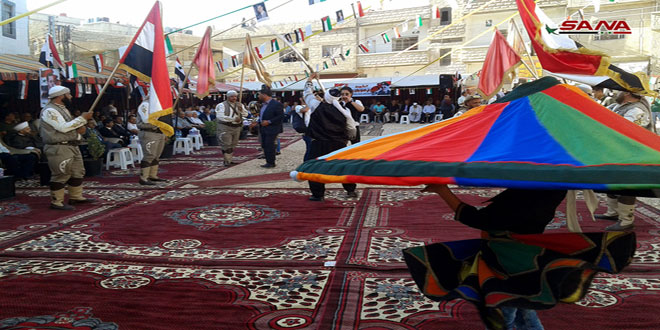وحيا المشاركون أبطال الجيش العربي السوري مؤكدين أن معركة اليوم هي بداية لتحرير كامل تراب الجولان السوري المحتل ورفع العلم الوطني فوق ثراه الطاهر.