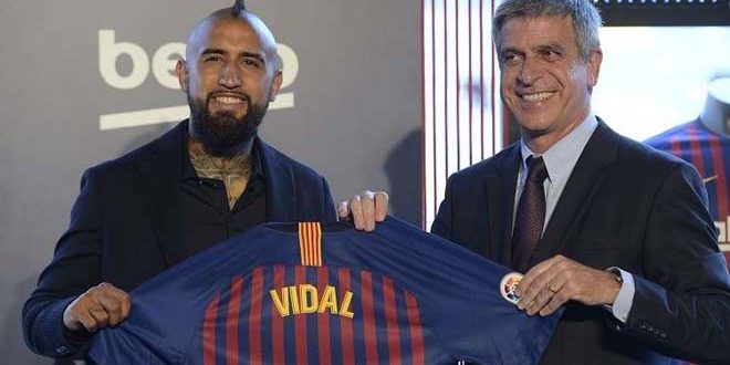 قدم نادي برشلونة الإسباني لوسائل الإعلام لاعبه الجديد الدولي التشيلي أرتورو فيدال الذي انضم للفريق قادما من بايرن ميونيخ الألماني مقابل 20 مليون يورو.